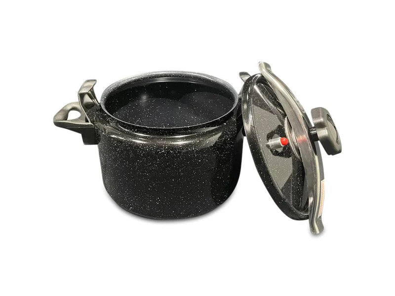 ¡Descubre el poder de nuestra Olla a Presión de 11 Litros, la elección ideal para preparar comidas saludables y deliciosas en un abrir y cerrar de ojos! Con la capacidad de cocinar de 3 a 10 veces más rápido que los métodos tradicionales, esta olla a presión ofrece una eficiencia inigualable, incluso más rápida que un microondas para grandes cantidades de comida.
